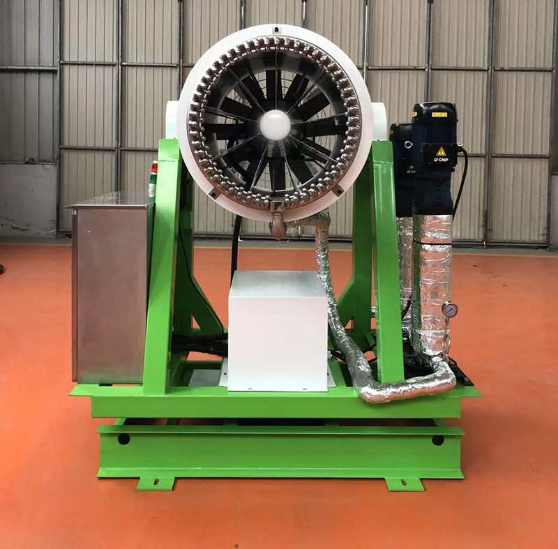 此款設備的噴霧距離是60米,配備的南方泵業(yè)的雙泵,將設備連續(xù)工作時間延長至24小時壓力能達到4Mpa,噴射出來的霧粒30微米。風機采用的是18.5KW的節(jié)能降噪風機,整個設備啟動起來噪音低于85db。這次的噴嘴要求也很嚴格,達到了吹出來的霧落地不濕的效果。噴嘴嚴格那么過濾也得嚴格,水質不好會堵塞噴嘴,整體設備單 配了一套過濾系統(tǒng)。還有自動泄水功能,停機即自動泄水。為了冬天 的使用,整體管路和水泵都做了嚴格的保溫設備。旋轉方面使用西門子plc系統(tǒng)單 控制設備的旋轉,讓旋轉系統(tǒng)實現(xiàn)隨時左右擺動,告別限位開關時代。配電系統(tǒng)采用的全進口施耐德,保證了整體設備的運行穩(wěn)定性。