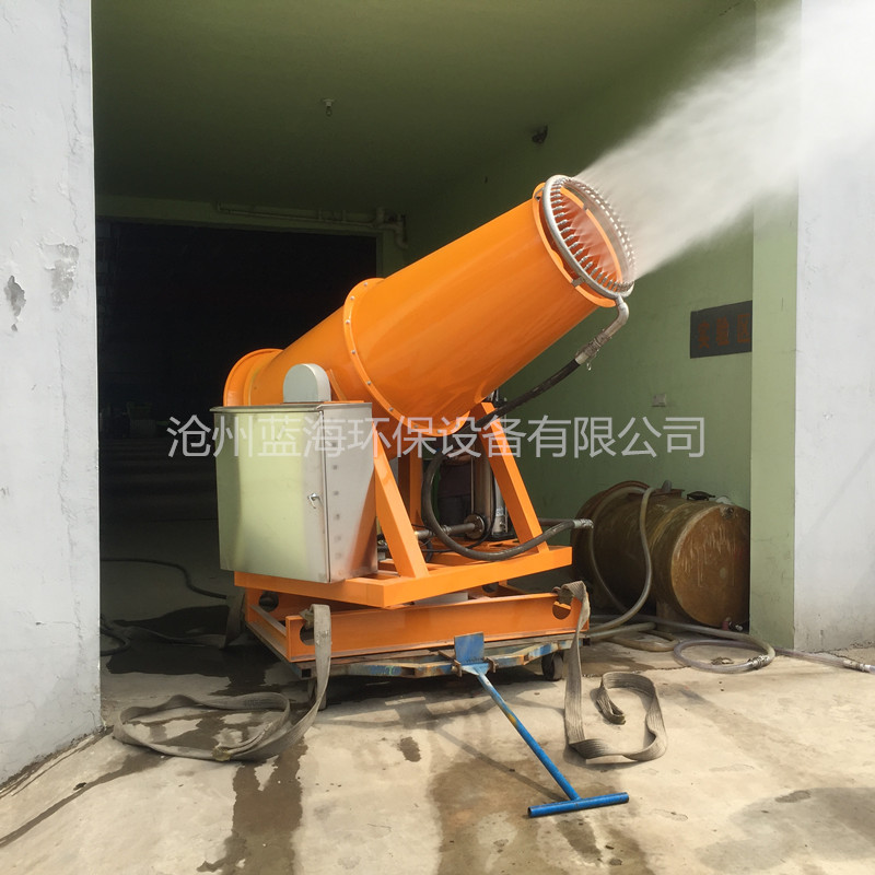 霧炮采用高壓水泵和 殊噴嘴將水霧化成直徑約10~200μm的水霧,通過高性能的遠射風(fēng)機將水霧送到粉塵集中處,水霧與粉塵結(jié)合、吸附成團,在重力的作用下沉降到地面,達到有效降塵的效果。移動便捷,隨開隨走,是解決露天粉塵無組織排放和除霾 有效的產(chǎn)品。
