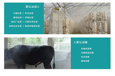大棚加濕、車間加濕、煤場加濕、養(yǎng)殖加濕、紡織廠加濕、印刷車間加濕、棉絮倉庫加濕、菌類養(yǎng)殖場加濕